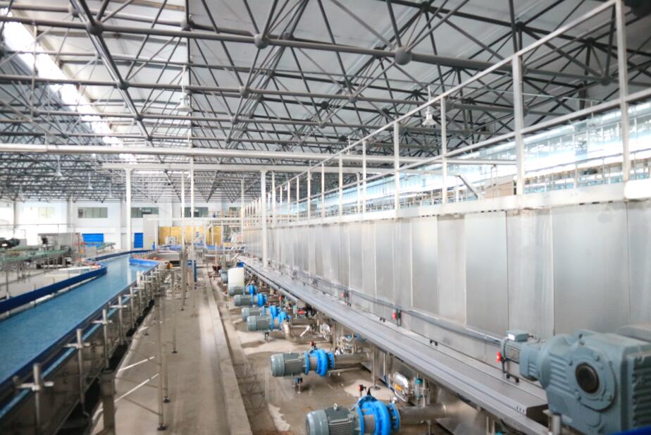 載瓶輸送帶采用節(jié)距為2又1/4英寸的高強(qiáng)度塑料鏈網(wǎng),其強(qiáng)度好,耐高溫,透水性好,并有一定的耐磨性,輸送帶的表面棱邊做成圓的,擴(kuò)大了表面積,使產(chǎn)品輸送平穩(wěn),主傳動(dòng)變頻無級(jí)變速,能很容易地改變輸送速度,從而使生產(chǎn)能力可在一定范圍內(nèi)作適當(dāng)調(diào)節(jié)。
